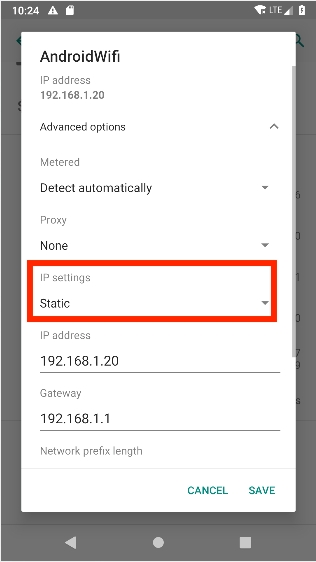 8. Manually enter your IP address, Gateway, Subnet/Network Prefix Length, using the same values you see in gray. Otherwise, you will not be able to save your settings.