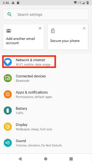 2. Select Network & Internet.