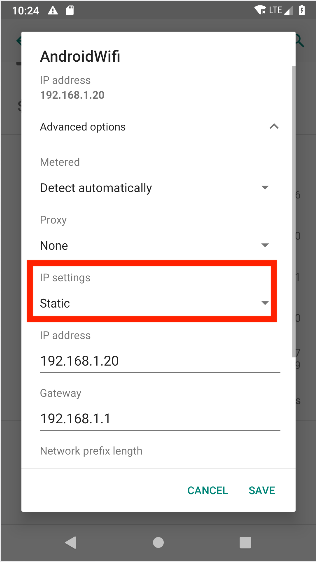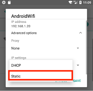 6. Set IP settings to Static
